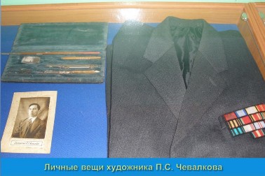 В "музейном чемодане" были собраны предметы времен Великой Отечественной войны 1941-1945 годов: алюминиевые фляжка и ложка, эмалированная кружка, гильзы от трёхлинейной винтовки Мосина, офицерский полевой планшет, солдатская пилотка и офицерская фуражка, письма-треугольники солдат, вырезки газет, медали Петра Викторовича.