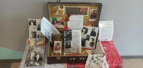 Недавно в нашей школе была организована необычная акция "Музей в чемодане". Выездную экскурсию провела заведущая музеем Симонова Г.В. Эта выставка дала учащимся возможность не только узнать о военных годах нашего земляка, военного летчика Петра Викторовича Чайки, но и буквально прикоснуться к истории: увидеть и потрогать руками патроны, снаряды, армейские котелки и фляжки, рассмотреть фотографии военных лет.
